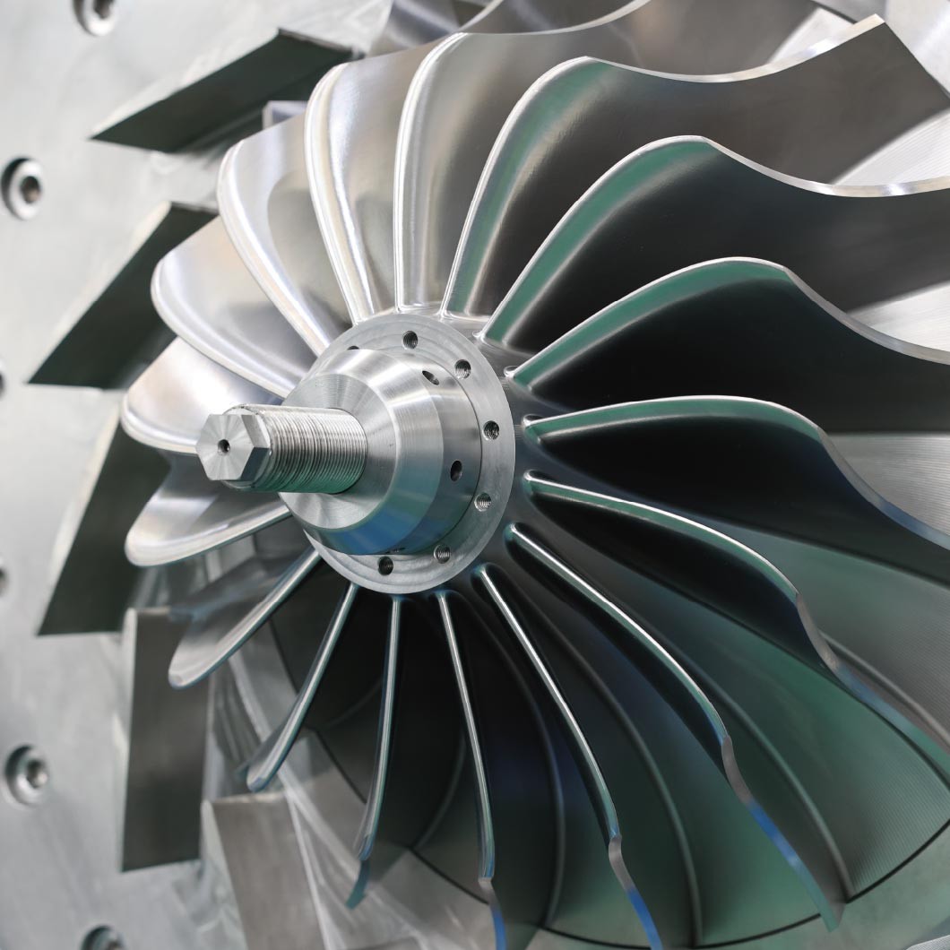 葉輪材質是由高強度、耐磨、高耐腐蝕的鈦合金材料鍛造,并通過五軸聯動銑床精銑而成。